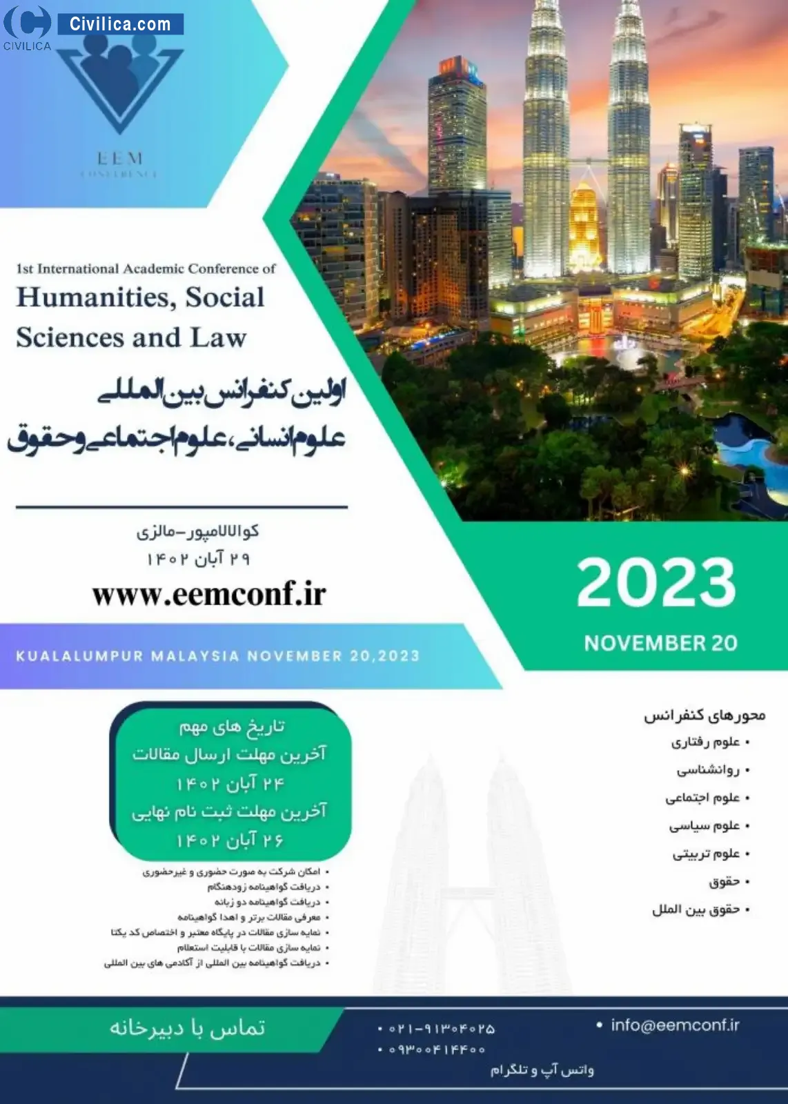 The first international conference of humanities, social sciences and law In date 2023-11-20 by ,شركت همايش آروين البرز was held. please refer to the following link to download all the papers of conference proceedings: Proceedings The first international conference of humanities, social sciences and law
