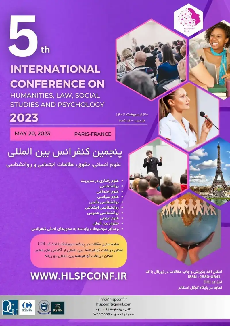 The 5th International Conference on Humanities, Law, Social Studies and Psychology In date 2023-05-20 by ,شركت همايش آروين البرز was held. please refer to the following link to download all the papers of conference proceedings: Proceedings The 5th International Conference on Humanities, Law, Social Studies and Psychology