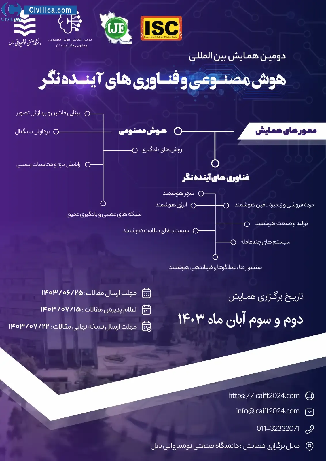 The 2nd International Conference on Artificial Intelligence and Future Technologies (ICAIFT2024) In date 2024-10-23 by Babol Noshirvani University of Technology, in City Babol was held. please refer to the following link to download all the papers of conference proceedings: Proceedings The 2nd International Conference on Artificial Intelligence and Future Technologies (ICAIFT2024)