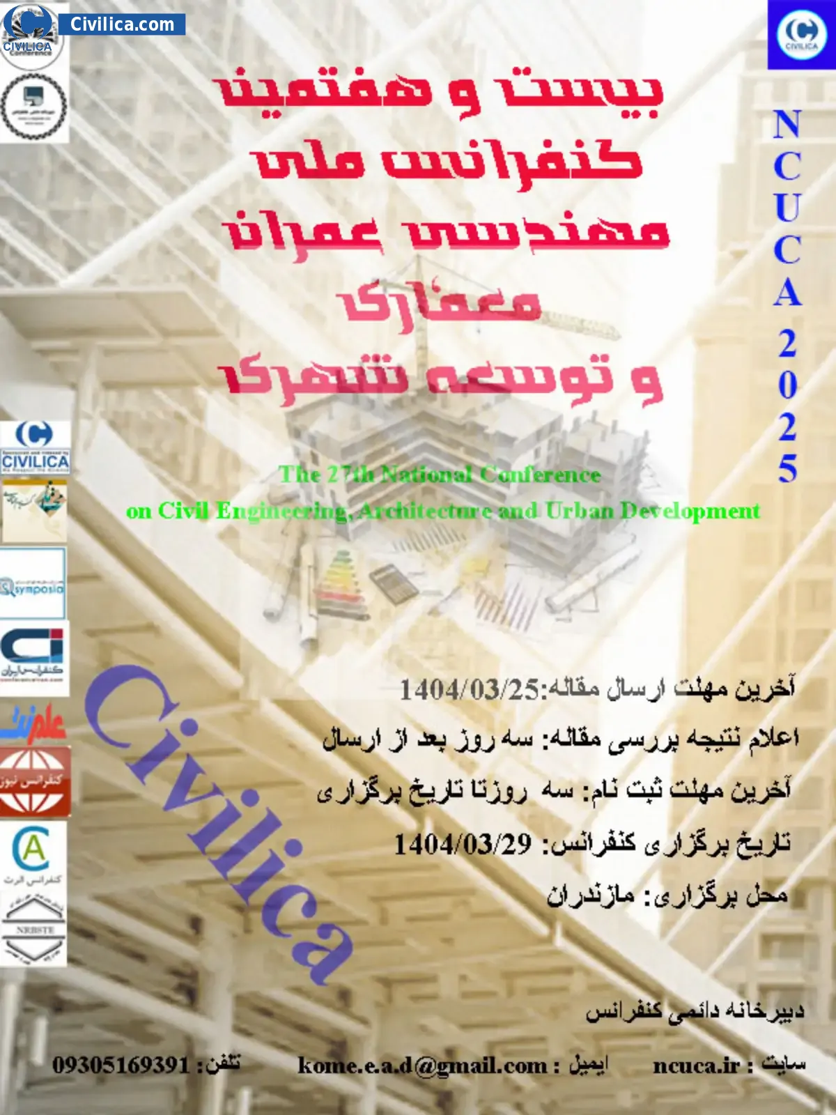 The 27th National Conference on Civil Engineering, Architecture and Urban Development In date 2025-06-19 by ,گروه علمی علم آوران دانش in City Babol was held. please refer to the following link to download all the papers of conference proceedings: Proceedings The 27th National Conference on Civil Engineering, Architecture and Urban Development