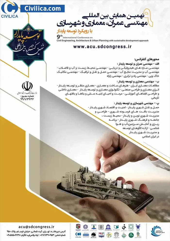 9th International Conference on Civil Engineering, Architecture, Urban Planning with Sustainable Development Approach In date 2025-11-11 by ,مرکز راهکارهای دستیابی به توسعه پایدار in City Tehran was held.This conference is held by Civilica Sponsoring and articles and will be indexed in CIVILICA
