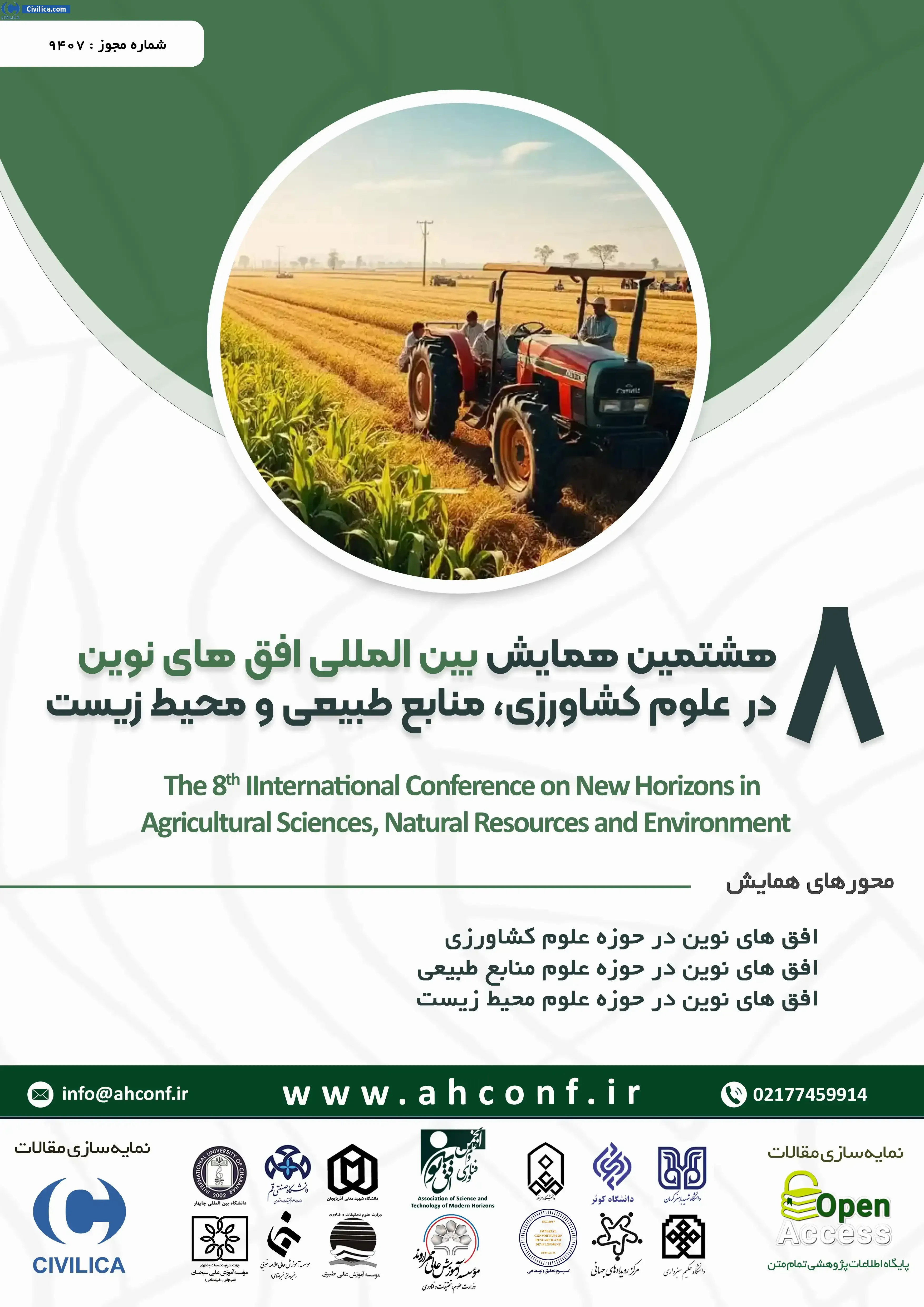 The 8ᵗʰ International Conference on New Horizons in Agricultural Sciences, Natural Resources and Environment In date 2026-02-14 by MehrArvand international Institute ,انجمن افق نوین علم و فناوری in City Tehran will be held.Since the conference held officially, all of this Conference paper and proceedings will be indexed in the Civilica database and Iranian Consortium of National Content (ICNC) and you can have full confidence.