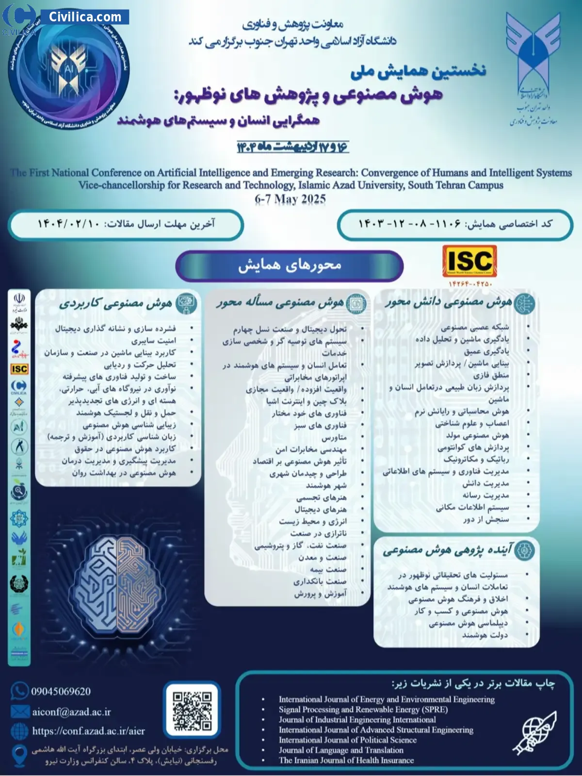 National Conference on Artificial Intelligence and Emerging Research In date 2025-05-06 by Islamic Azad University of South Tehran, in City Tehran was held. please refer to the following link to download all the papers of conference proceedings: Proceedings National Conference on Artificial Intelligence and Emerging Research