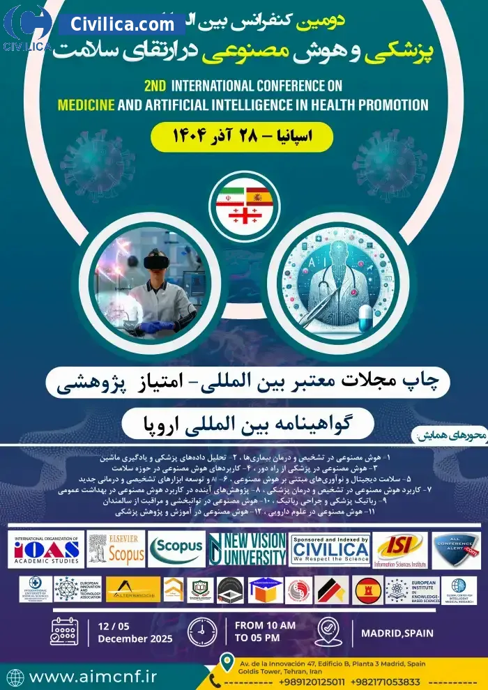 2nd International Conference on Medicine and Artificial Intelligence in Health Promotion In date 2025-12-19 by ,سازمان بین المللی مطالعات دانشگاهی will be held.Since the conference held officially, all of this Conference paper and proceedings will be indexed in the Civilica database and Iranian Consortium of National Content (ICNC) and you can have full confidence.