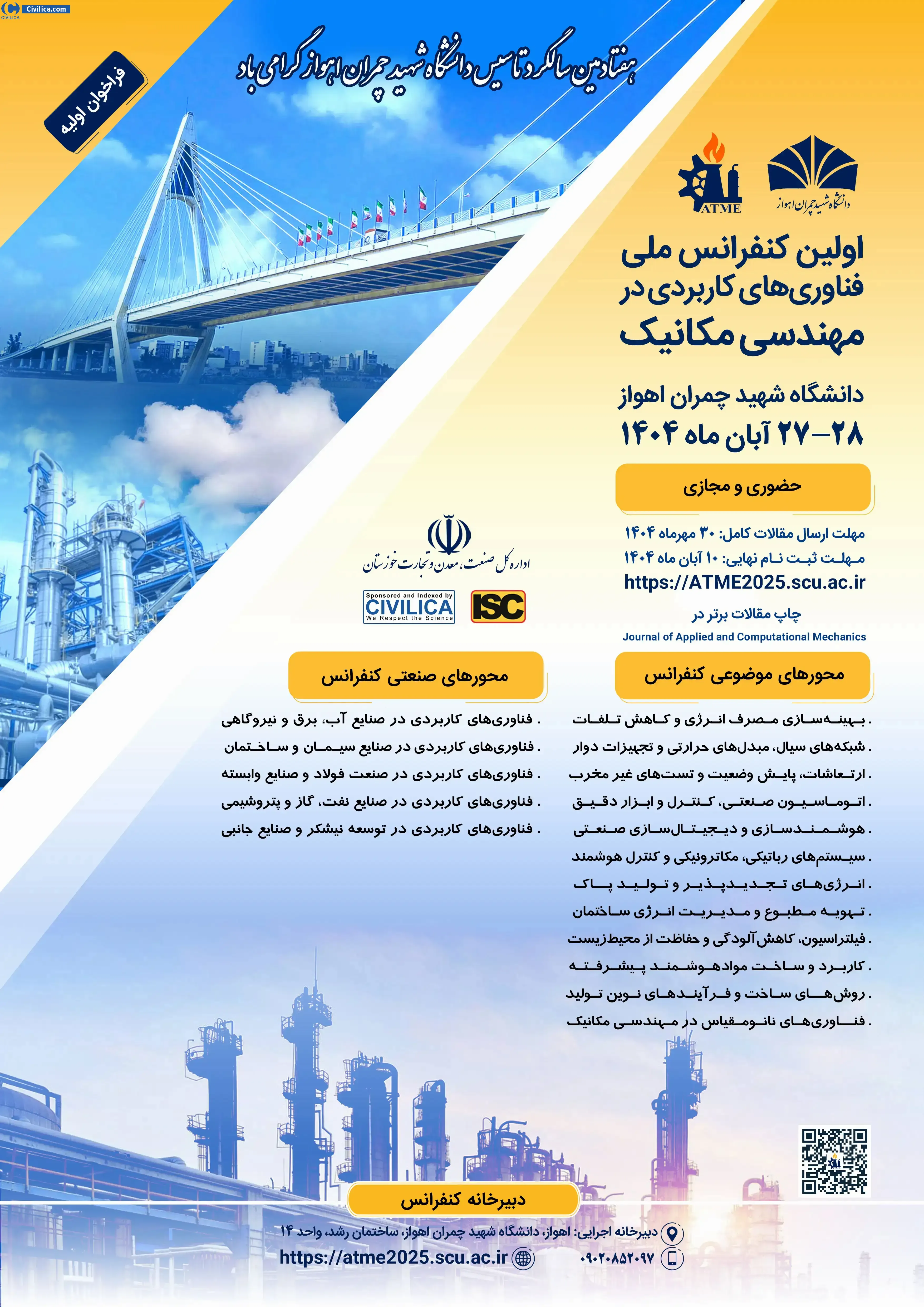 The First National Conference on Applied Technologies in Mechanical Engineering (ATME2025) In date 2025-11-18 by Shahid Chamran University of Ahvaz, in City Ahvaz was held.This conference is held by Civilica Sponsoring and articles and will be indexed in CIVILICA