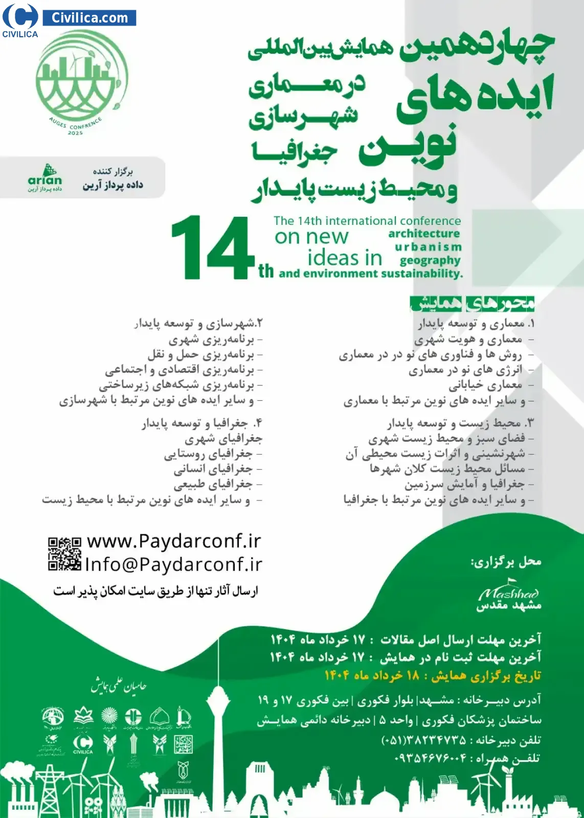 The 14th International Conference on New Ideas in Architecture, Urban Planning, Geography and Sustainable Environment In date 2025-06-08 by ,داده پرداز آرین با همکاری دانشگاههای معتبر ایران in City Mashhad was held. please refer to the following link to download all the papers of conference proceedings: Proceedings The 14th International Conference on New Ideas in Architecture, Urban Planning, Geography and Sustainable Environment
