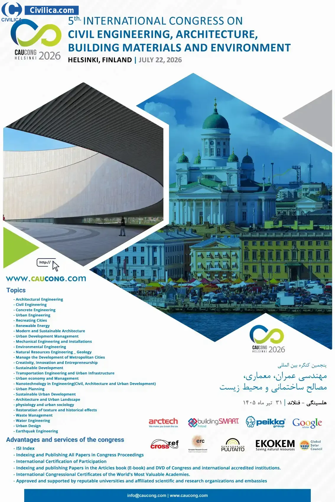 5th International Congress on Civil Engineering, Architecture, Building Materials and Environment In date 2026-07-22 by ,دبیرخانه دائمی همایش will be held.Since the conference held officially, all of this Conference paper and proceedings will be indexed in the Civilica database and Iranian Consortium of National Content (ICNC) and you can have full confidence.