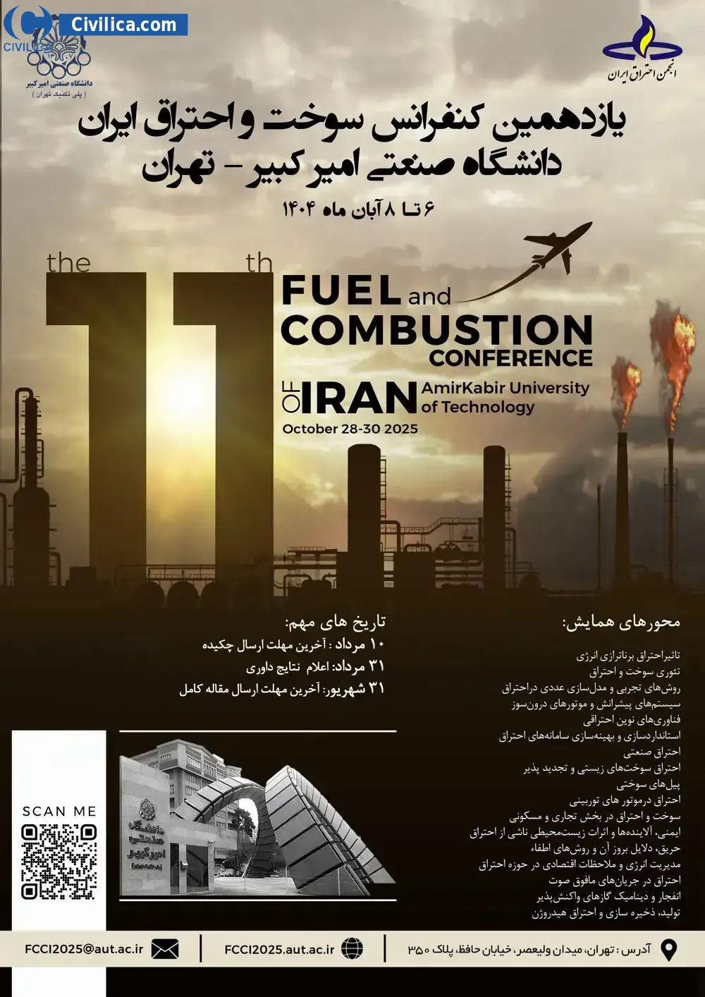 The 11th Fuel and Combustion Conference of Iran In date 2025-10-28 by AmirKabir University,Iranian Combustion Institute in City Tehran was held. please refer to the following link to download all the papers of conference proceedings: Proceedings The 11th Fuel and Combustion Conference of Iran