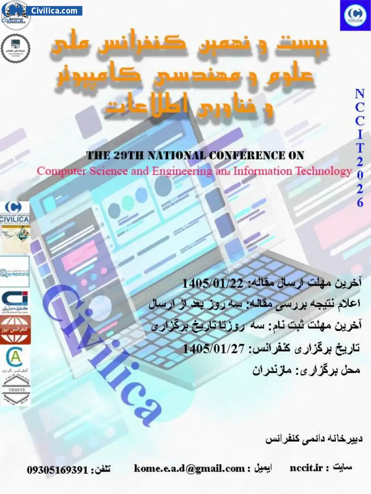 The 29th National Conference on Computer Science and Engineering and Information Technology In date 2026-04-16 by ,گروه علمي علم آوران دانش in City Babol will be held.Since the conference held officially, all of this Conference paper and proceedings will be indexed in the Civilica database and Iranian Consortium of National Content (ICNC) and you can have full confidence.