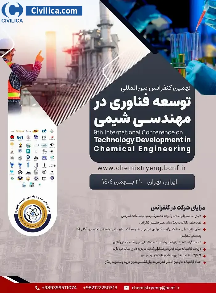Ninth International Conference on Technology Development in Chemical Engineering In date 2026-02-19 by , in City Tehran will be held.Since the conference held officially, all of this Conference paper and proceedings will be indexed in the Civilica database and Iranian Consortium of National Content (ICNC) and you can have full confidence.