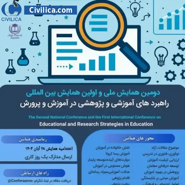 The Second National Conference and the First International Conference on Educational and Research Strategies in Education In date 2026-01-05 by ,شرکت دانا ماندگار پارس in City Ahvaz was held.This conference is held by Civilica Sponsoring and articles and will be indexed in CIVILICA