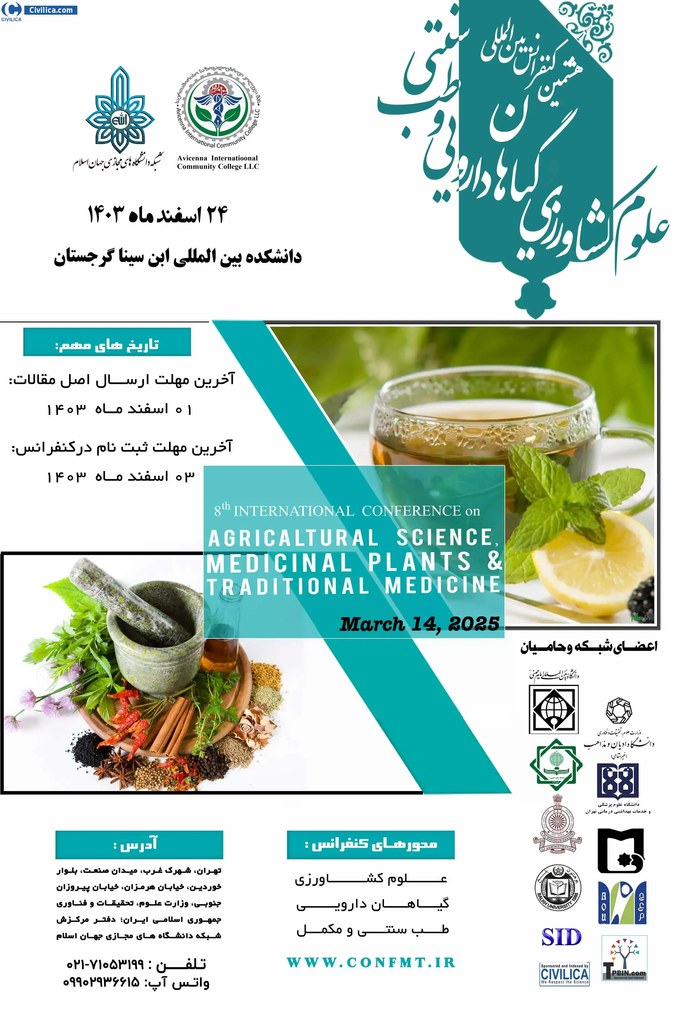 8th International Conference on Agricultural Sciences, Medicinal Plants and Traditional Medicine In date 2025-03-14 by ,دانشگاه بین المللی ابن سینا گرجستان با همکاری موسسه تحقیقاتی رایمند پژوه was held. please refer to the following link to download all the papers of conference proceedings: Proceedings 8th International Conference on Agricultural Sciences, Medicinal Plants and Traditional Medicine