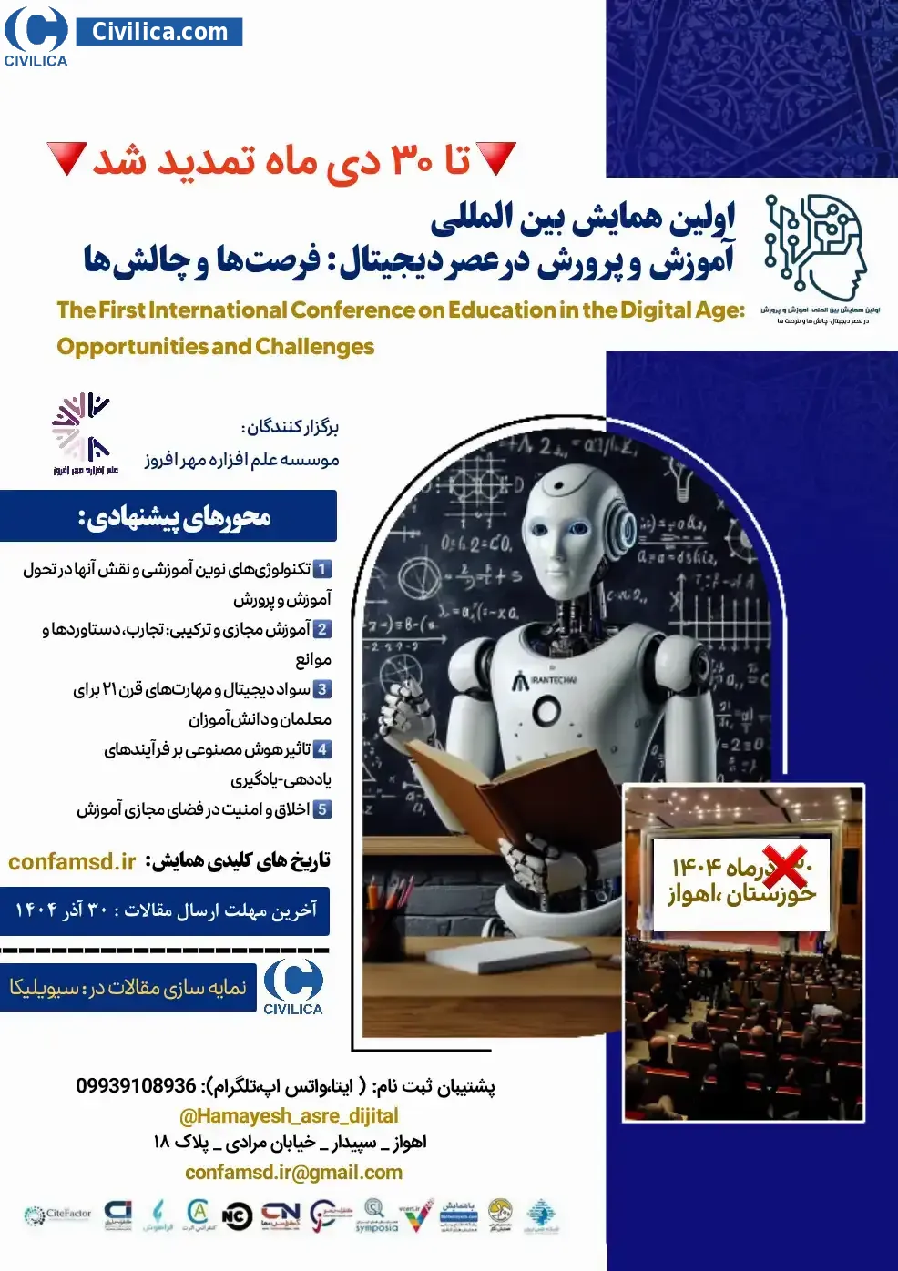 The First International Conference on Education in the Digital Age: Opportunities and Challenges In date 2026-01-20 by ,موسسه علم افزاره مهرافروز in City Ahvaz was held.This conference is held by Civilica Sponsoring and articles and will be indexed in CIVILICA