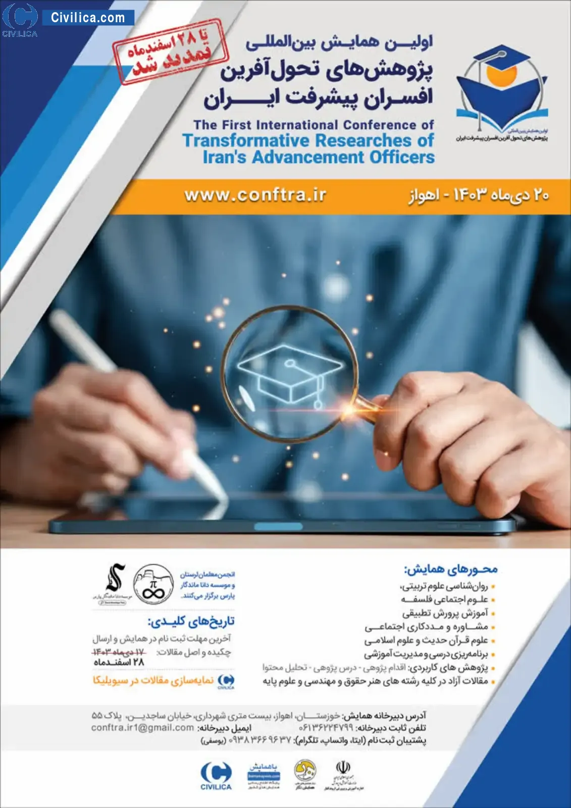 Accepted papers in The first international conference of transformative researches of Iran's advancement officers