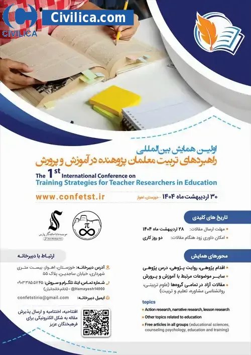 The first international conference on training strategies for teacher researchers in education In date 2025-05-20 by ,موسسه دانا ماندگار پارس in City Ahvaz was held. please refer to the following link to download all the papers of conference proceedings: Proceedings The first international conference on training strategies for teacher researchers in education