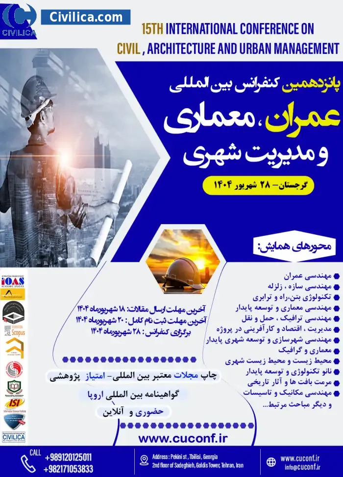 15th International Conference on Civil, Architecture and Urban Management In date 2025-09-19 by ,سازمان بین المللی مطالعات دانشگاهی برگزارکنندگان و مشارکت کنندگان اصلی کنفرانس was held. please refer to the following link to download all the papers of conference proceedings: Proceedings 15th International Conference on Civil, Architecture and Urban Management