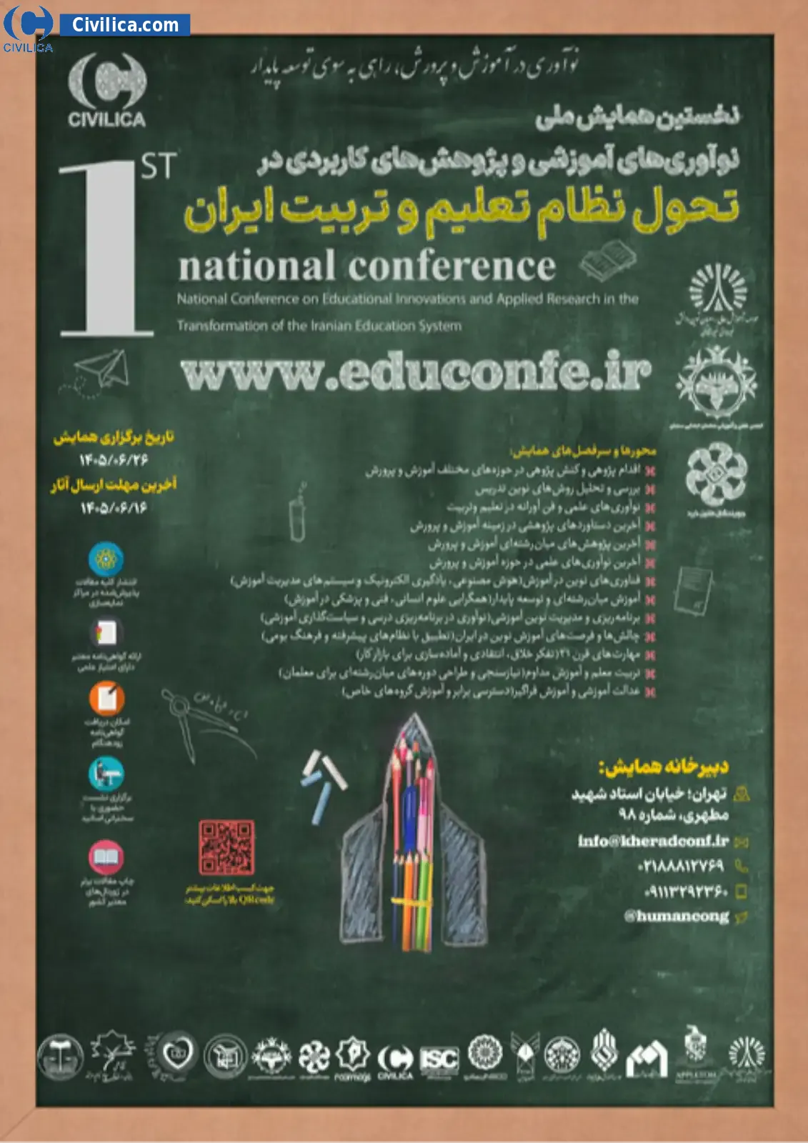 Educational innovations and applied research in transforming Iran's education system In date 2026-09-17 by ,موسسه جویندگان طنین خردانجمن علمی معلمان استان سمنان in City Tehran will be held.Since the conference held officially, all of this Conference paper and proceedings will be indexed in the Civilica database and Iranian Consortium of National Content (ICNC) and you can have full confidence.