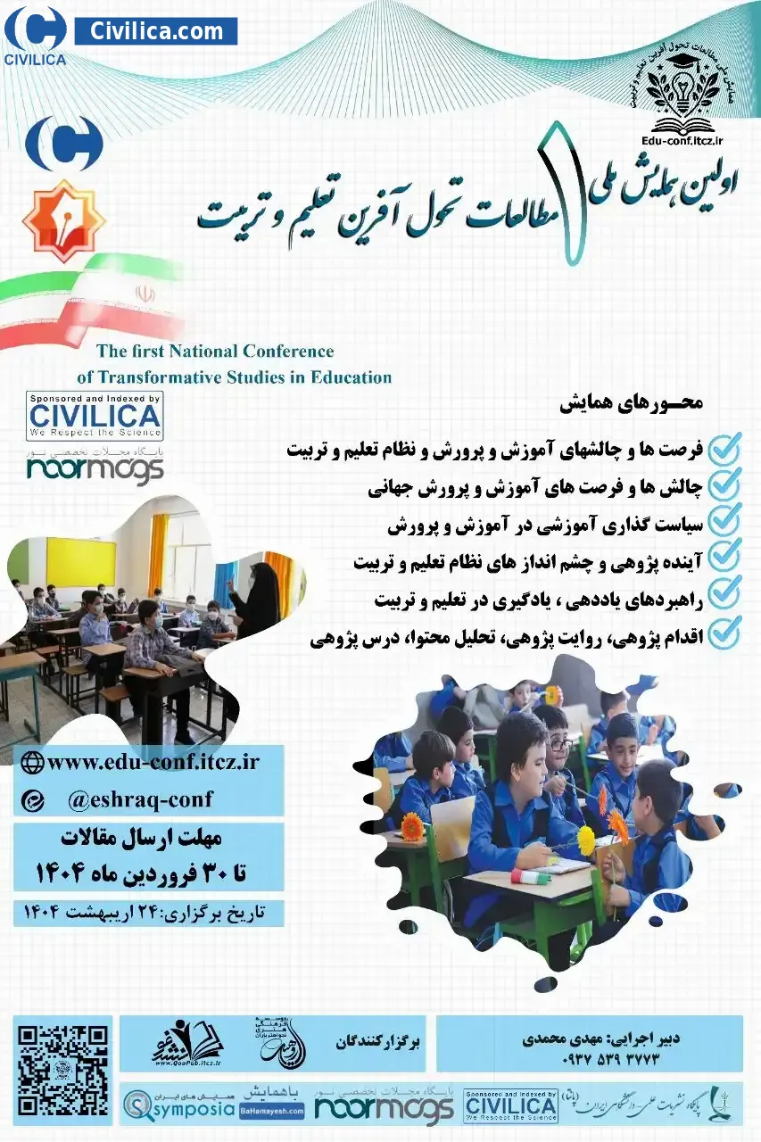 The First National Conference on Transformative Studies in Education In date 2025-05-14 by ,اداره ورزش و جوانان شهرستان خدابنده مرکز علمی فرهنگی روهیل سازمان مردم نهاد امید جوانانانتشارات غوموسسه آرمان اشراق in City Khodabandeh was held. please refer to the following link to download all the papers of conference proceedings: Proceedings The First National Conference on Transformative Studies in Education