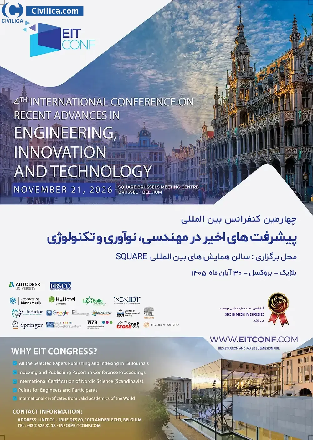 4th International Conference on Recent Advances in Engineering, Innovation and Technology In date 2026-11-21 by ,دبیرخانه دائمی کنفرانس will be held.Since the conference held officially, all of this Conference paper and proceedings will be indexed in the Civilica database and Iranian Consortium of National Content (ICNC) and you can have full confidence.