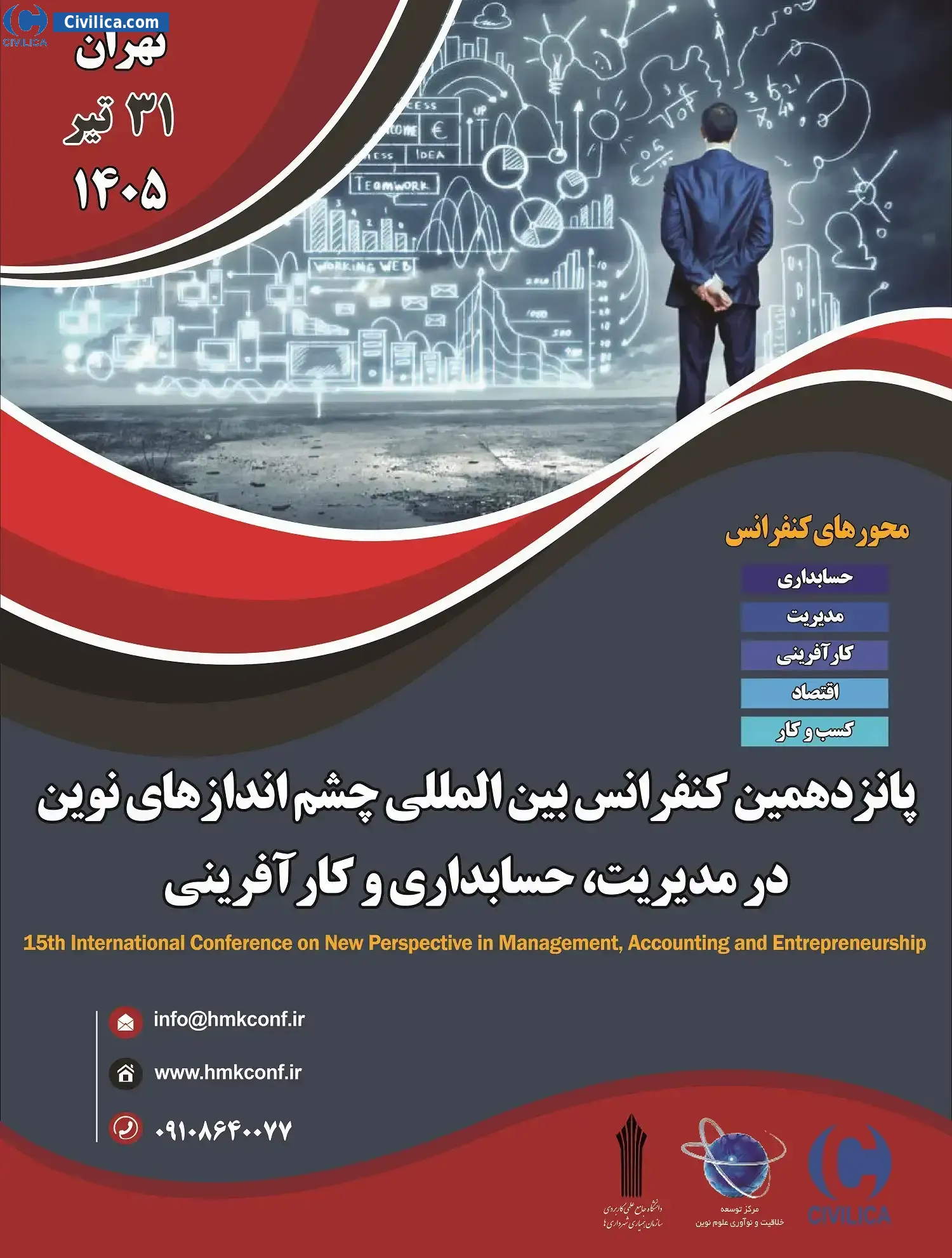 15th International Conference on New Perspective in Management, Accounting and Entrepreneurship In date 2026-07-22 by ,دانشگاه جامع علمی کاربردی سازمان همیاری شهرداری ها و مرکز توسعه خلاقیت و نوآوری علوم نوین in City Tehran will be held.Since the conference held officially, all of this Conference paper and proceedings will be indexed in the Civilica database and Iranian Consortium of National Content (ICNC) and you can have full confidence.