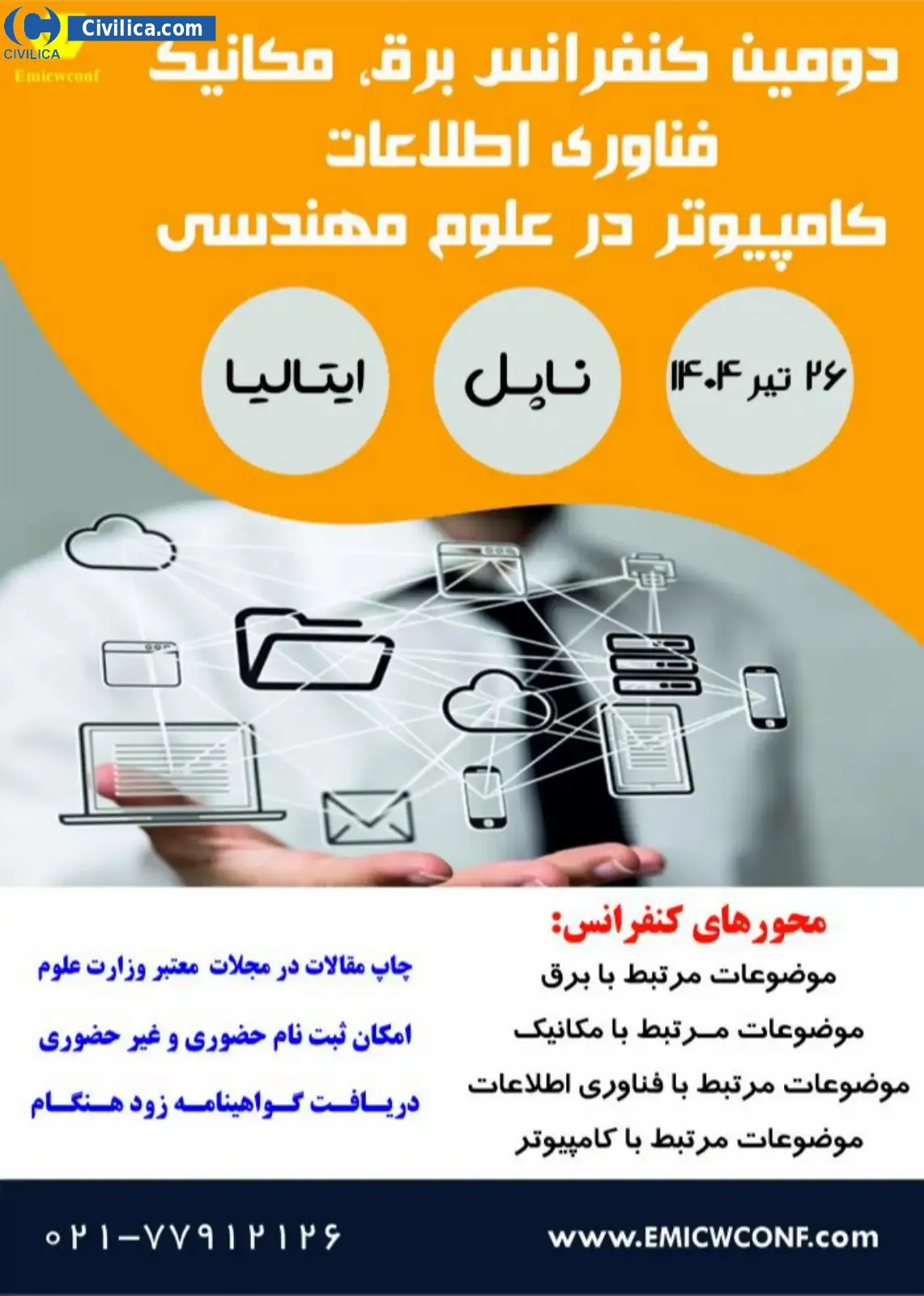 The Second International Conference on Electrical, Mechanical, Information Technology and Computers in Engineering Sciences In date 2025-07-18 by ,دبیرخانه دائمی کنفرانس was held. please refer to the following link to download all the papers of conference proceedings: Proceedings The Second International Conference on Electrical, Mechanical, Information Technology and Computers in Engineering Sciences