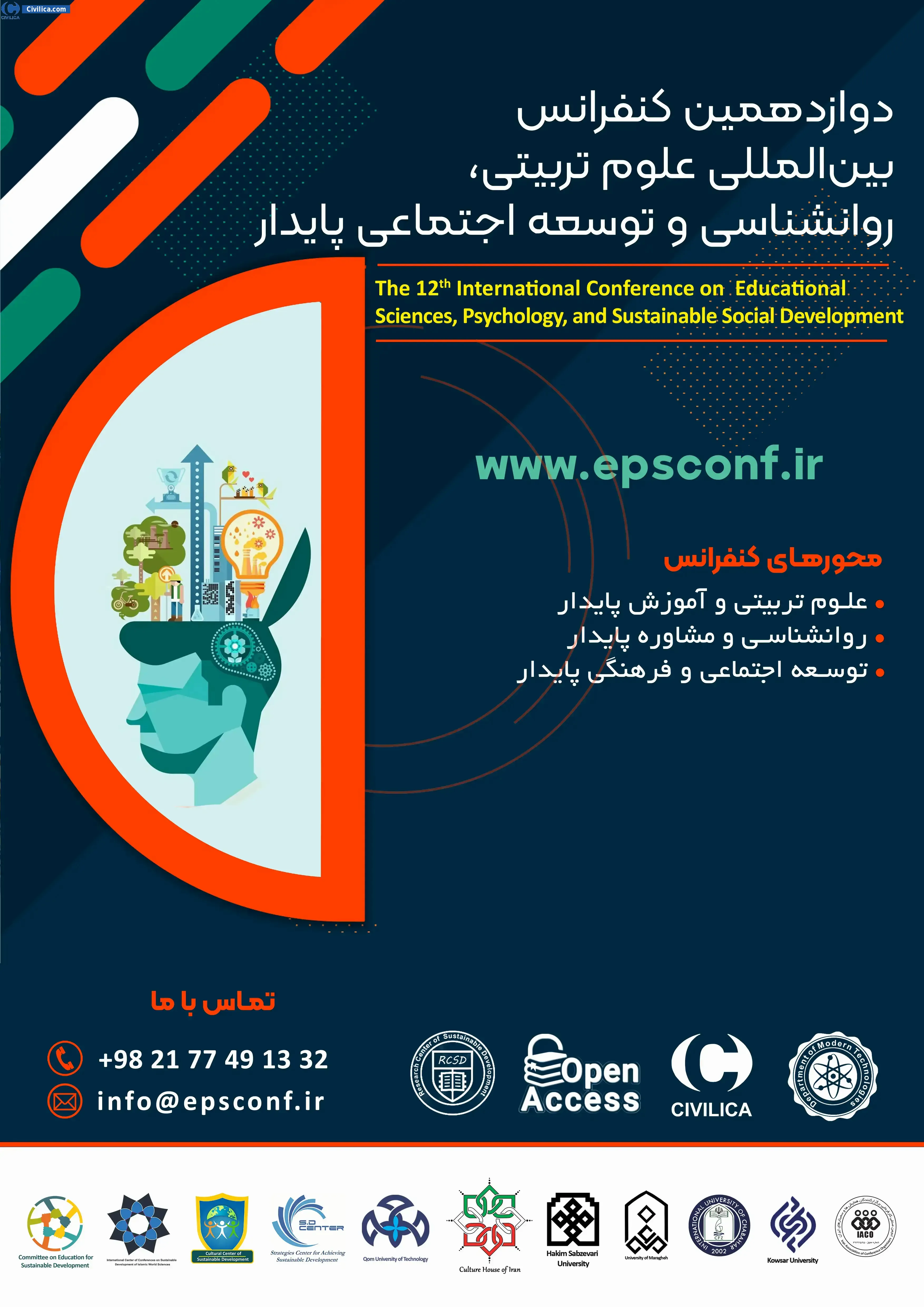 The 12th National Conference on Sustainable Development in Educational Sciences and Psychology, Social and Cultural Studies In date 2026-01-20 by ,مرکز بین المللی همایشها و سمینارهای توسعه پایدار علوم جهان اسلام in City Tehran will be held.Since the conference held officially, all of this Conference paper and proceedings will be indexed in the Civilica database and Iranian Consortium of National Content (ICNC) and you can have full confidence.