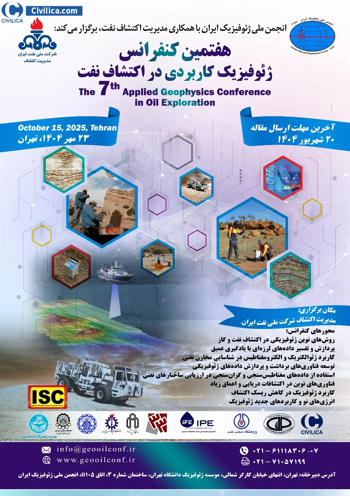 The 7th Applied Geophysics Conference in Oil Exploration In date 2025-10-15 by ,انجمن ملی ژئوفیزیک ایرانمدیریت اکتشاف شرکت ملی نفت ایران in City Tehran was held. please refer to the following link to download all the papers of conference proceedings: Proceedings The 7th Applied Geophysics Conference in Oil Exploration