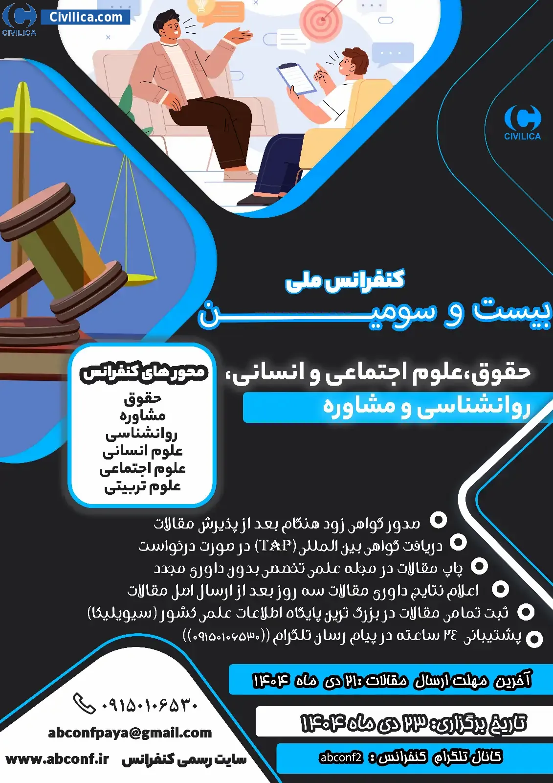The 23rd National Conference on Law, Social Sciences and Humanities, Psychology and Counseling In date 2026-01-13 by ,موسسه پایاشهر دبیرخانه دائمی کنفرانس مجله علمی تخصصی پایاشهر in City Shirvan was held. please refer to the following link to download all the papers of conference proceedings: Proceedings The 23rd National Conference on Law, Social Sciences and Humanities, Psychology and Counseling