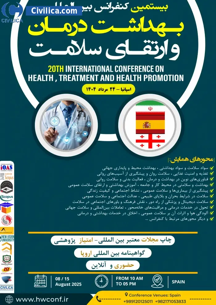 20th International Conference on Health, Treatment and Health Promotion In date 2025-08-15 by ,سازمان بین المللی مطالعات دانشگاهی was held. please refer to the following link to download all the papers of conference proceedings: Proceedings 20th International Conference on Health, Treatment and Health Promotion