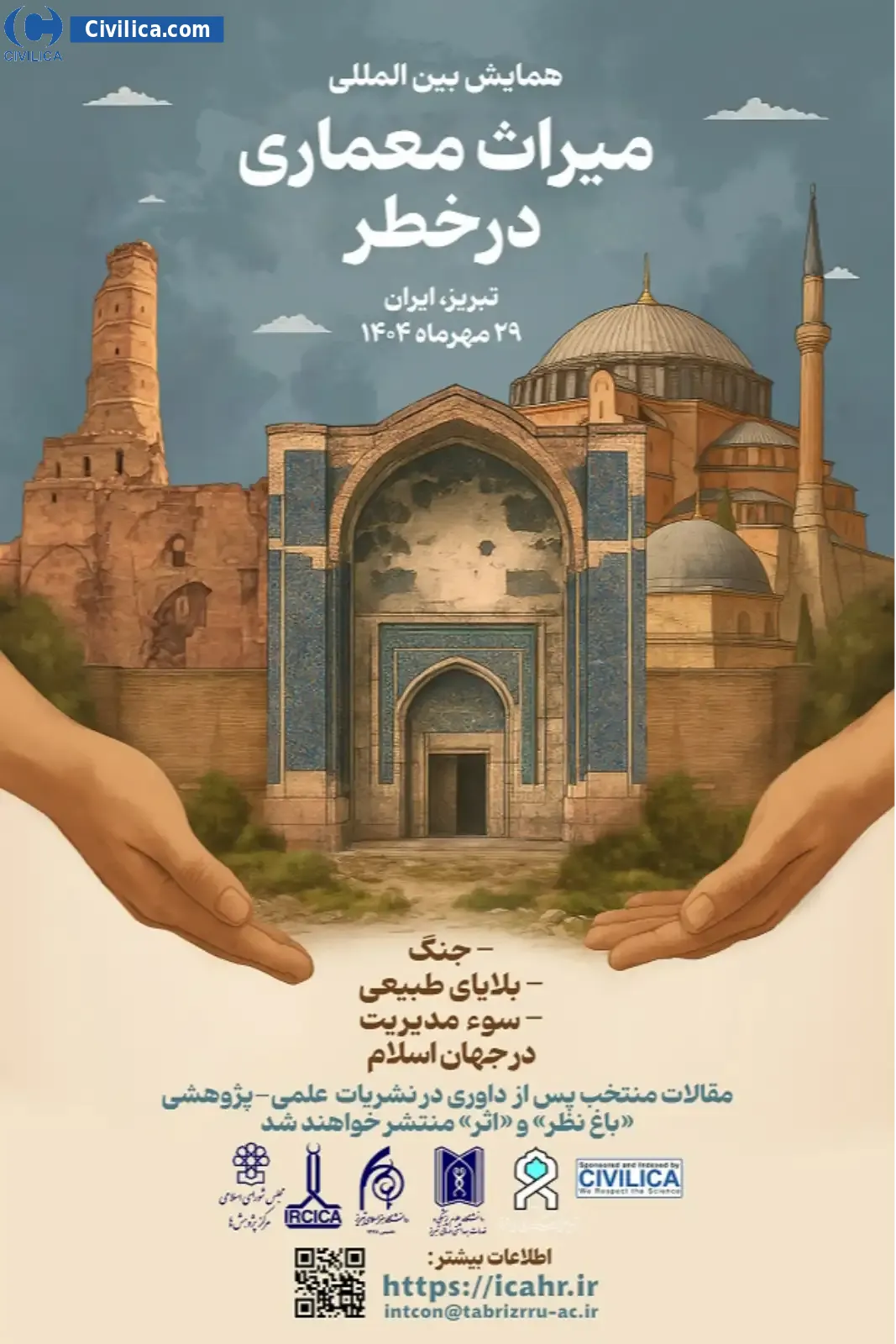 Architectural Heritage at Risk: Exploring the Challenges of War, Natural Disasters, and Mismanagement in the Islamic World In date 2025-10-21 by Tabriz Islamic Art University,مجتمع علمی، فرهنگی و تاریخی ربع رشیدی in City Tabriz was held.This conference is held by Civilica Sponsoring and articles and will be indexed in CIVILICA