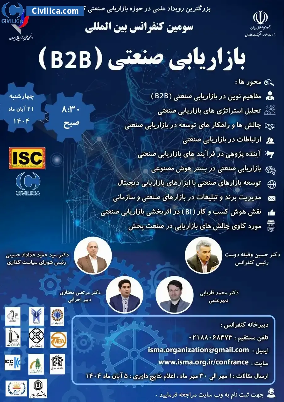 3rd International Conference on Industrial Marketing In date 2025-11-12 by ,Iran Scientific Marketing Institute in City Tehran was held.This conference is held by Civilica Sponsoring and articles and will be indexed in CIVILICA
