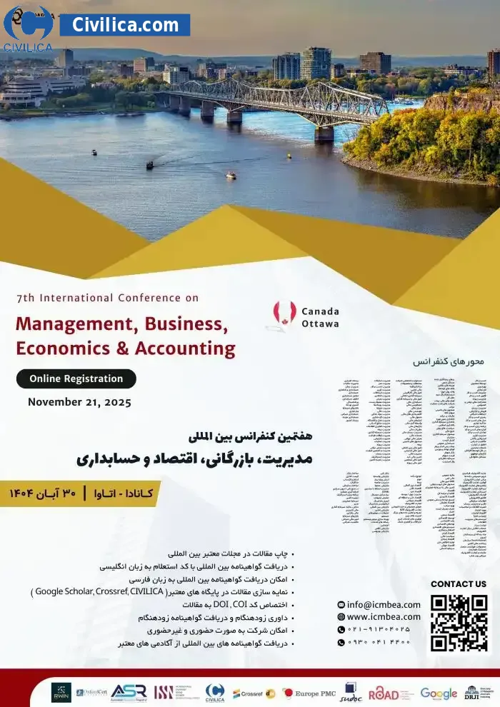 7th International Conference on Management, Business, Economics and Accounting In date 2025-11-21 by ,همایش آروین البرز was held.This conference is held by Civilica Sponsoring and articles and will be indexed in CIVILICA
