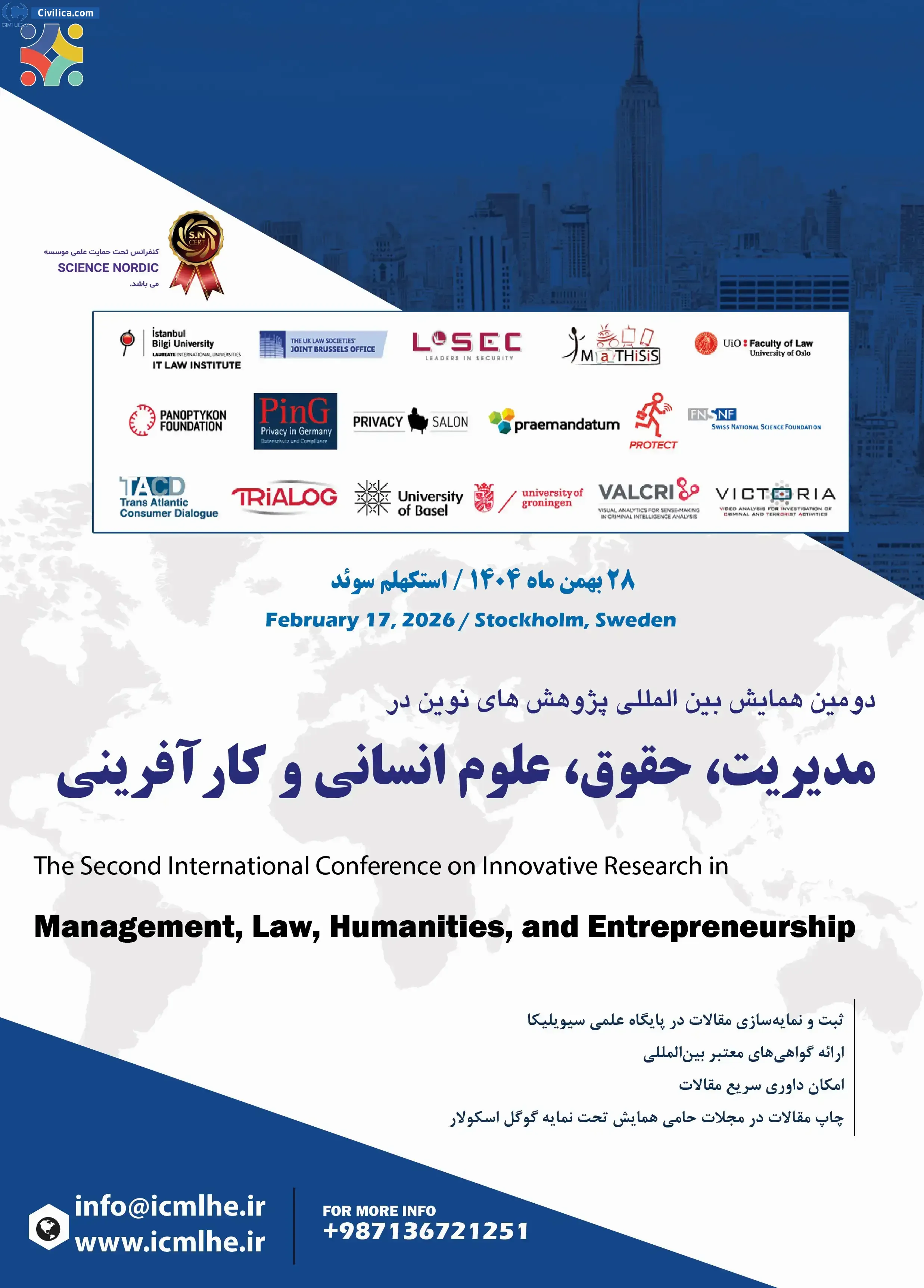 The Second International Conference on Modern Research in Management, Law, Humanities and Entrepreneurship In date 2026-02-17 by ,دبیرخانه دائمی همایش will be held.Since the conference held officially, all of this Conference paper and proceedings will be indexed in the Civilica database and Iranian Consortium of National Content (ICNC) and you can have full confidence.