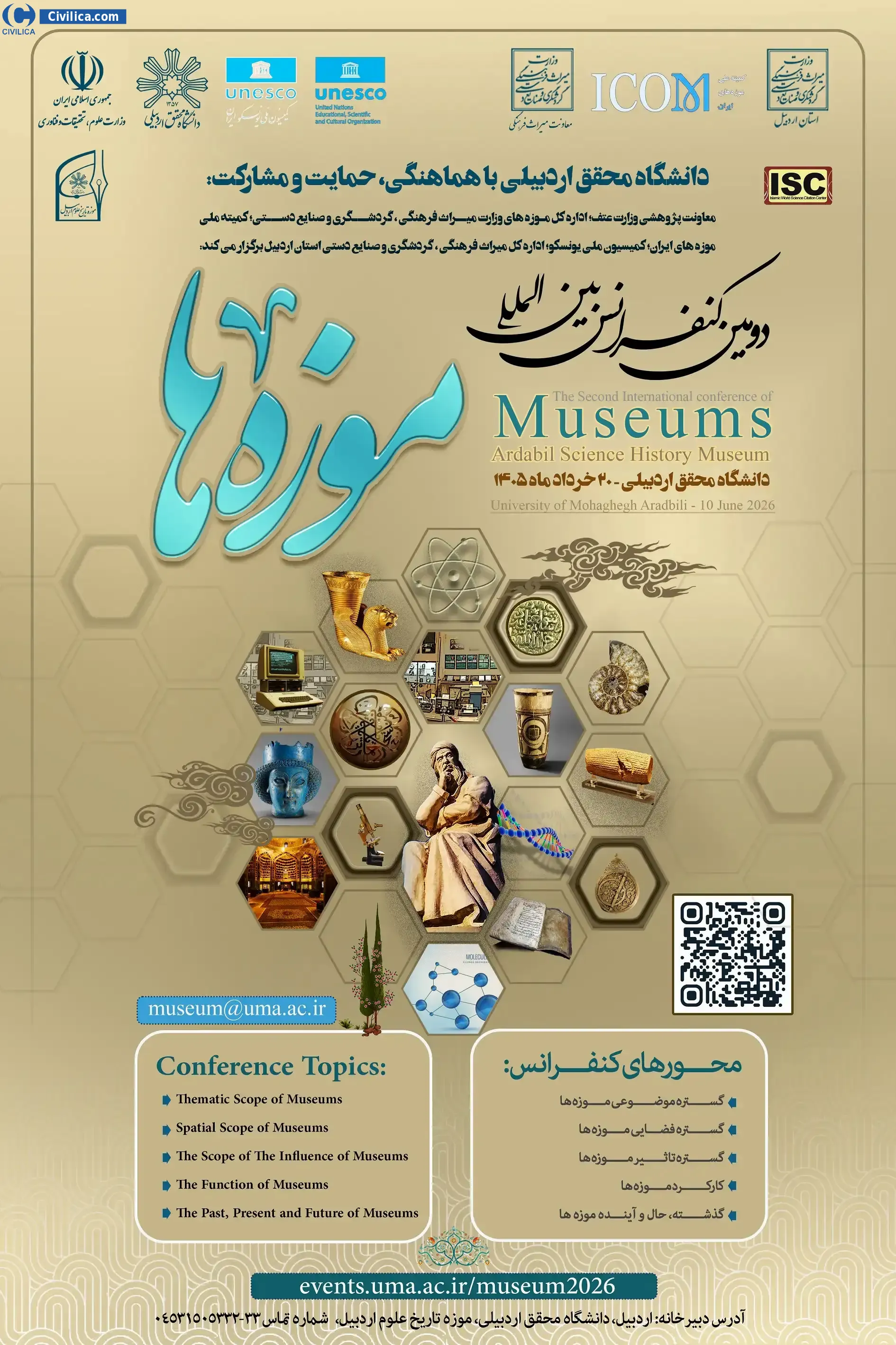 The Second International Coference of Museums In date 2026-06-10 by University of Mohaghegh Ardabili, in City Ardabil will be held.Since the conference held officially, all of this Conference paper and proceedings will be indexed in the Civilica database and Iranian Consortium of National Content (ICNC) and you can have full confidence.