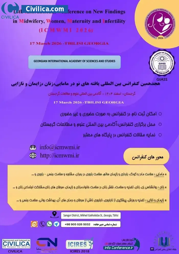 18th International Conference on New Findings in Midwifery, Women, Maternity and Infertility In date 2026-03-17 by , آکادمی بین المللی علوم و مطالعات گرجستان will be held.Since the conference held officially, all of this Conference paper and proceedings will be indexed in the Civilica database and Iranian Consortium of National Content (ICNC) and you can have full confidence.