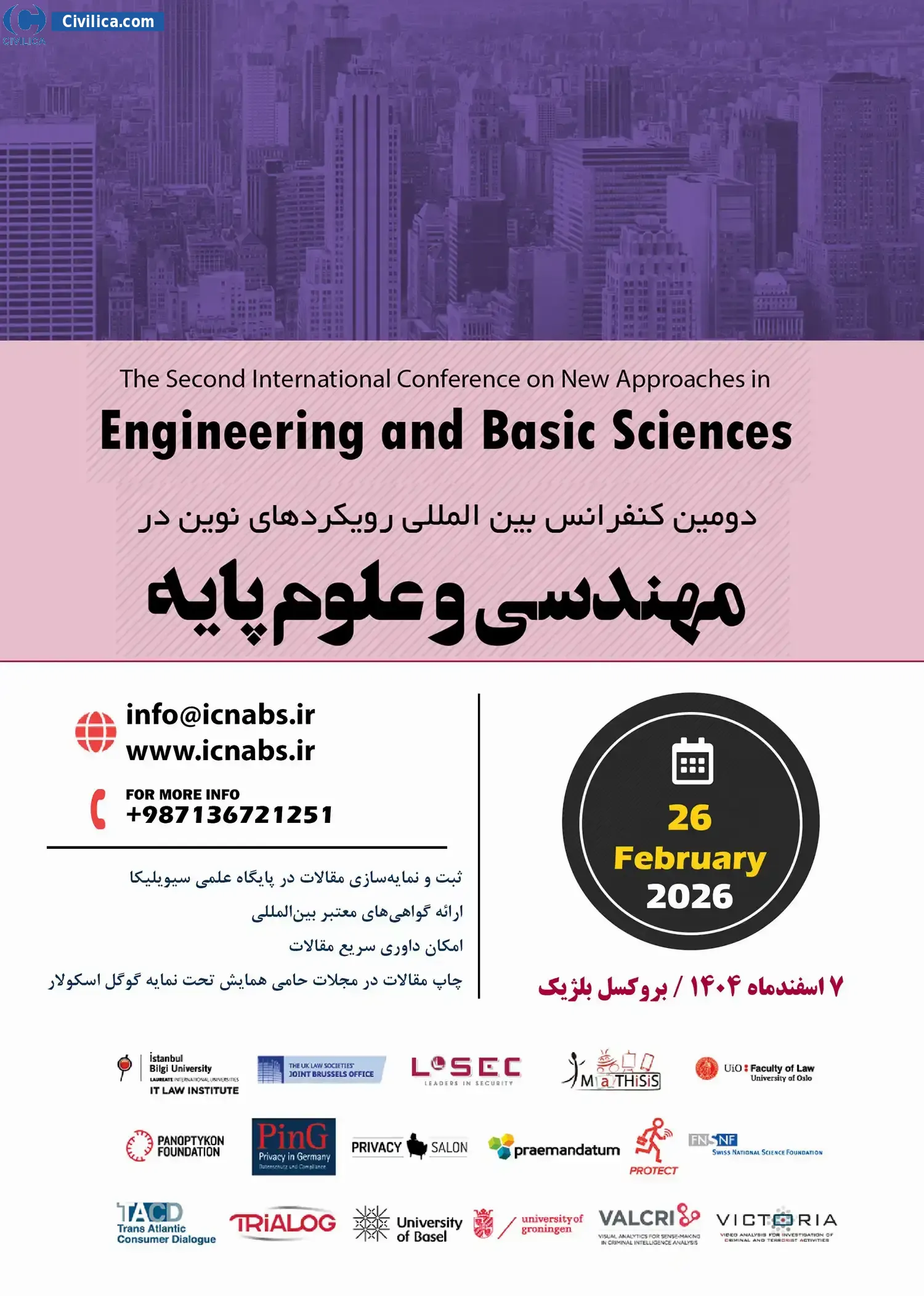 The Second International Conference on New Approaches in Engineering and Basic Sciences In date 2026-02-26 by ,دبیرخانه دائمی همایش will be held.Since the conference held officially, all of this Conference paper and proceedings will be indexed in the Civilica database and Iranian Consortium of National Content (ICNC) and you can have full confidence.