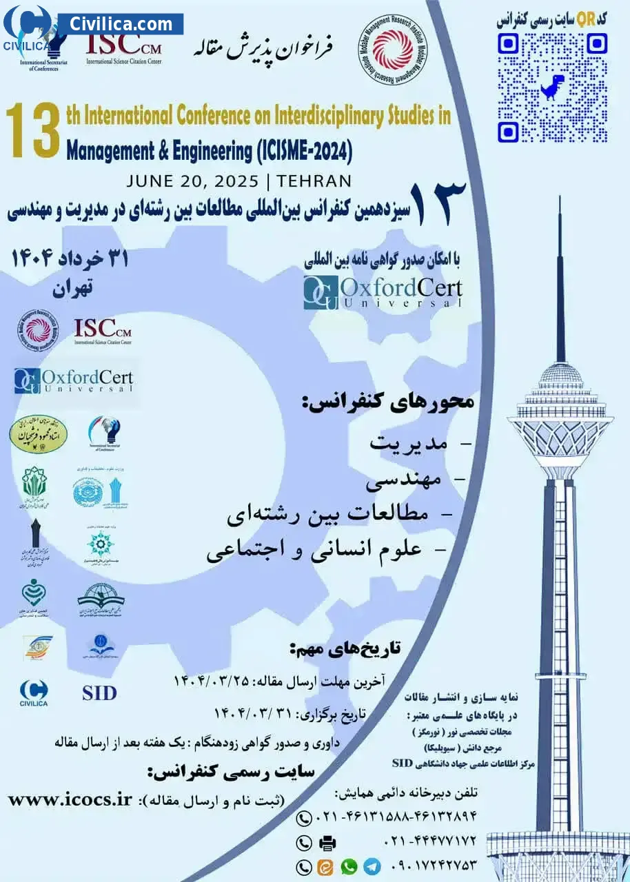 13th International Conference on Interdisciplinary Studies in Management & Engineering In date 2025-06-21 by , in City Tehran was held. please refer to the following link to download all the papers of conference proceedings: Proceedings 13th International Conference on Interdisciplinary Studies in Management & Engineering
