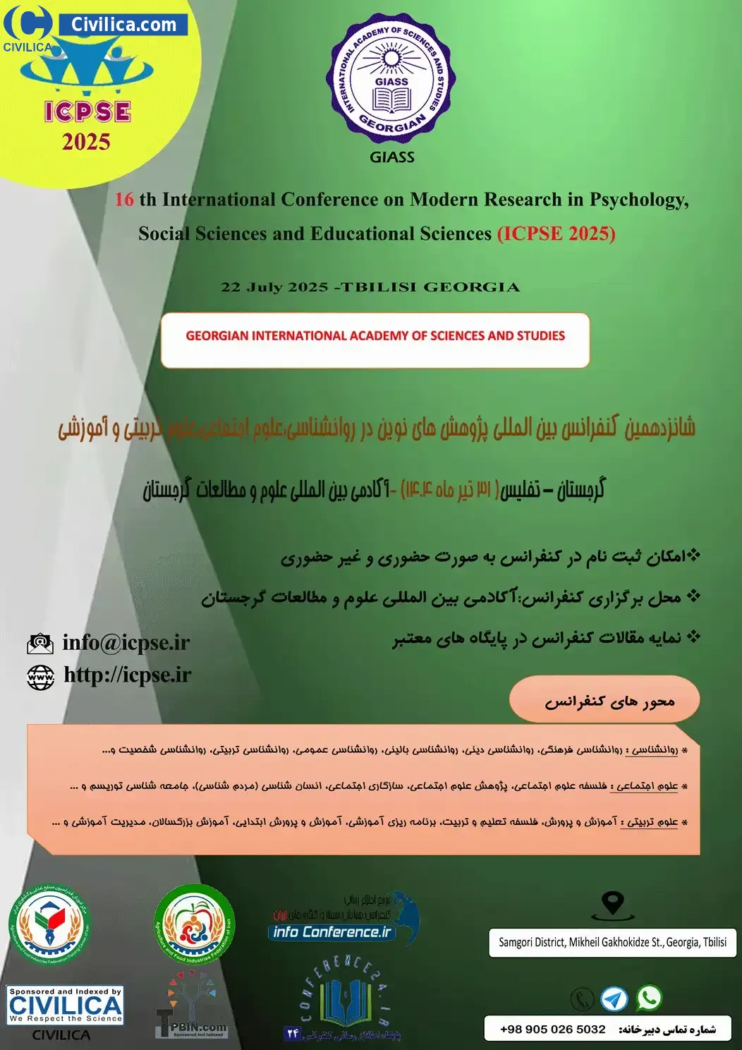 16th International Conference on Modern Research in Psychology, Social Sciences, Educational Sciences In date 2025-07-22 by , was held. please refer to the following link to download all the papers of conference proceedings: Proceedings 16th International Conference on Modern Research in Psychology, Social Sciences, Educational Sciences