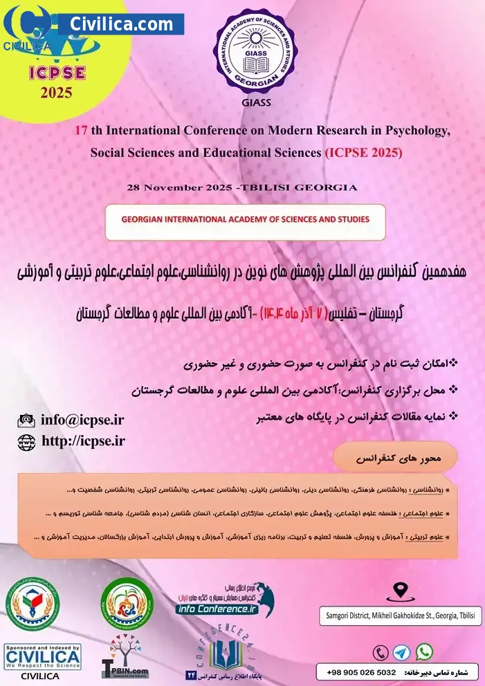 17th International Conference on Modern Research in Psychology, Social Sciences, Educational Sciences In date 2025-11-28 by ,آکادمی بین المللی علوم و مطالعات گرجستان was held.This conference is held by Civilica Sponsoring and articles and will be indexed in CIVILICA