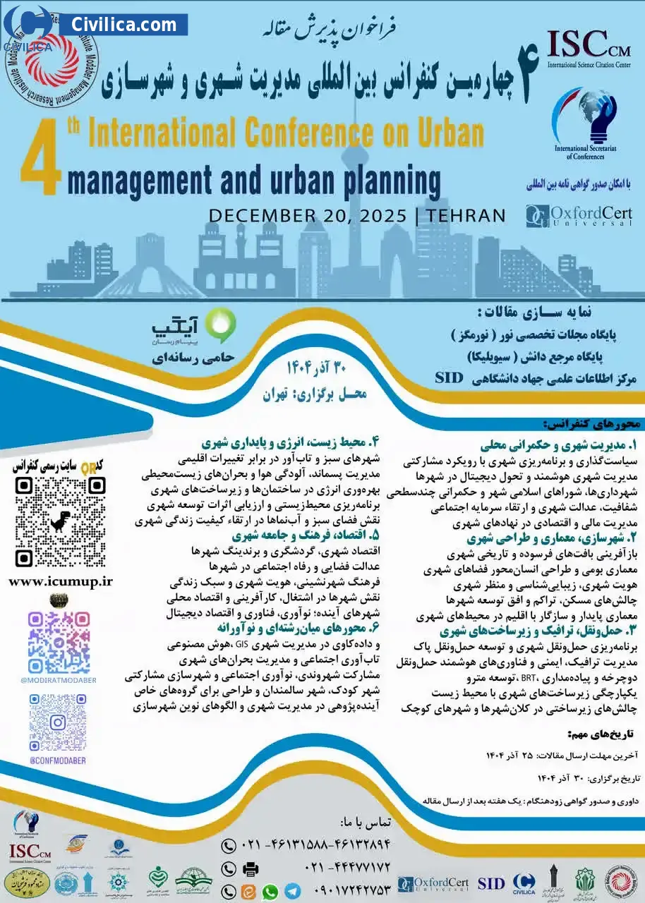 Postall Address: تهران: بلوار اشرفی اصفهانی، بالاتر از میدان پونک. خیابان سوم، پلاک ۳۰، واحد ۸. دبیرخانه بین المللی کنفرانس ها