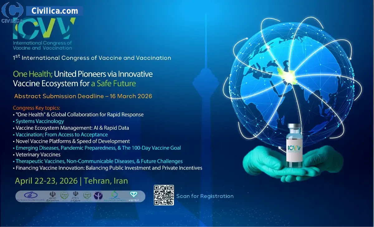 1st International Congress of Vaccine & Vaccination (ICVV) In date 2026-04-22 by Pasteur Institute,موسسه تحقیقات واکسن و سرمسازی رازی in City Tehran will be held.Since the conference held officially, all of this Conference paper and proceedings will be indexed in the Civilica database and Iranian Consortium of National Content (ICNC) and you can have full confidence.