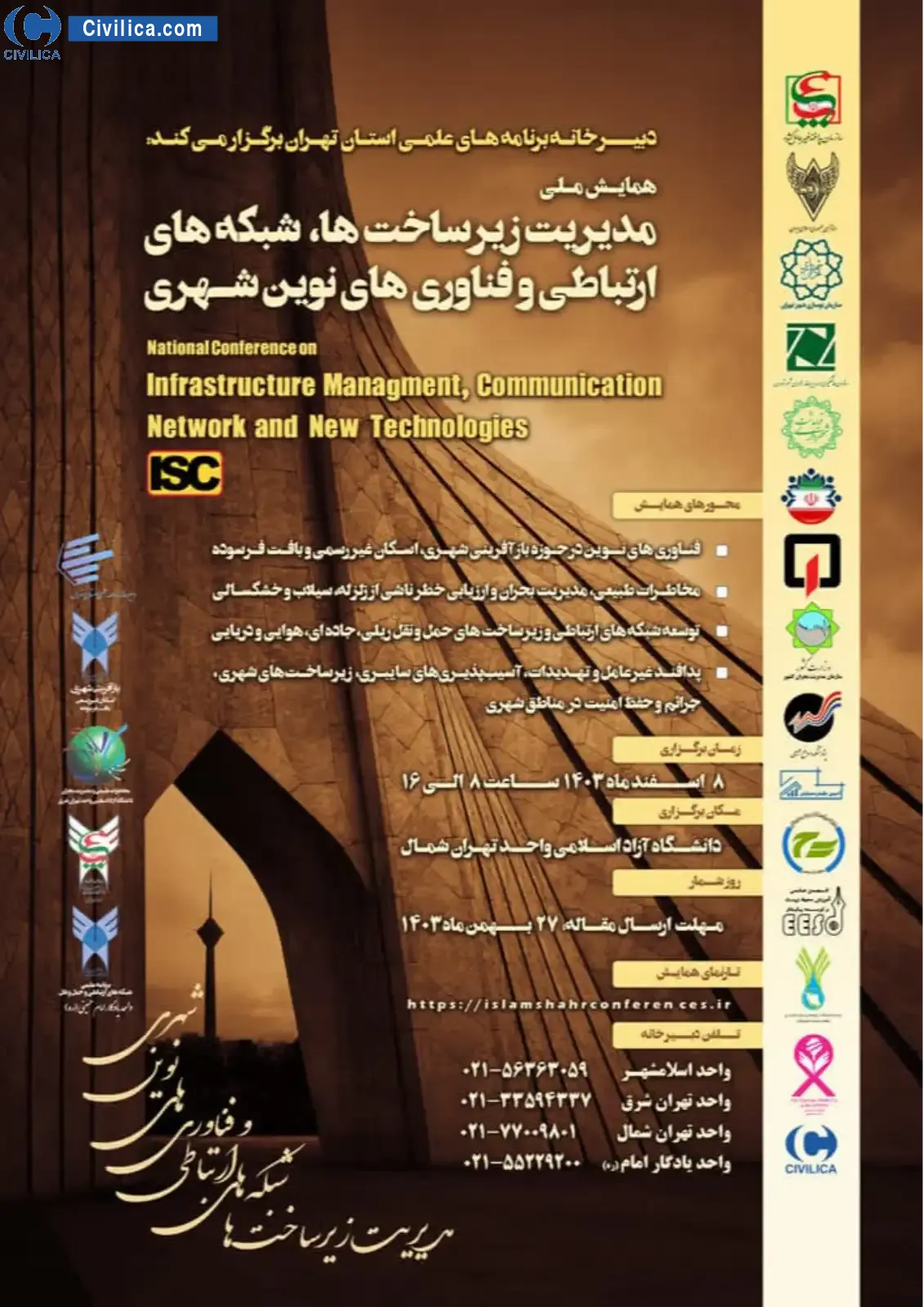 Infrastructure Management, Communication Networks and New Urban Technologies In date 2025-02-26 by Islamic Azad University of East Tehran، Islamic Azad University of Eslamshahr، Islamic Azad University of North Tehran، Islamic Azad University of Shahr Rey, in City Tehran was held. please refer to the following link to download all the papers of conference proceedings: Proceedings Infrastructure Management, Communication Networks and New Urban Technologies