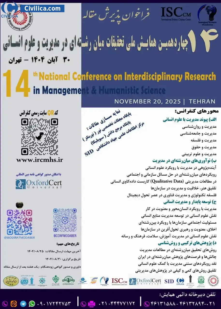 14th National Interdisciplinary Research Conference in Management & Humanistic Sciences In date 2025-11-21 by , in City Tehran was held.This conference is held by Civilica Sponsoring and articles and will be indexed in CIVILICA