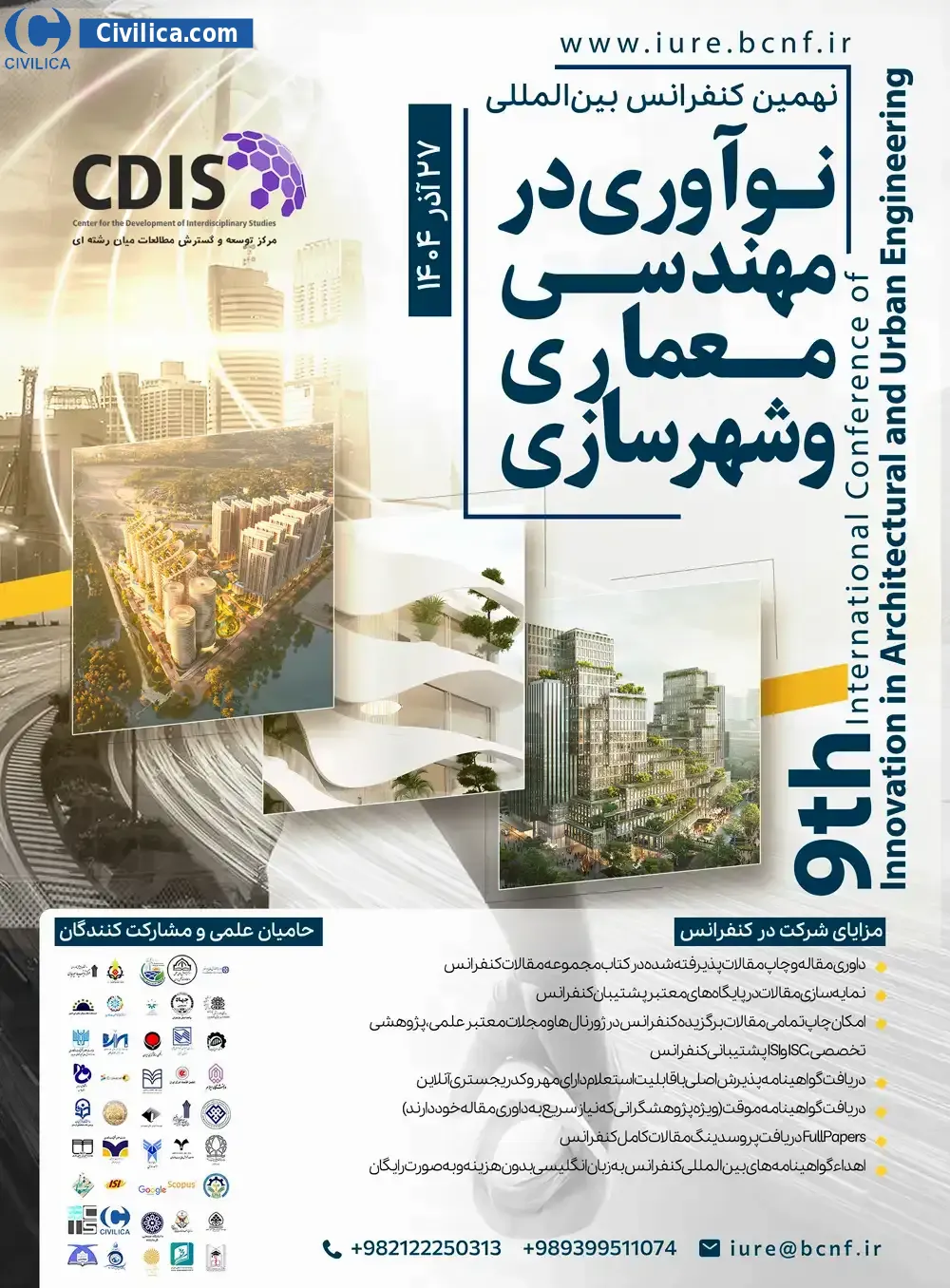 Conference tel: تلفن دبیرخانه اجرایی: 02122250313(10 خط مستقیم)Email: iure@bcnf.ir