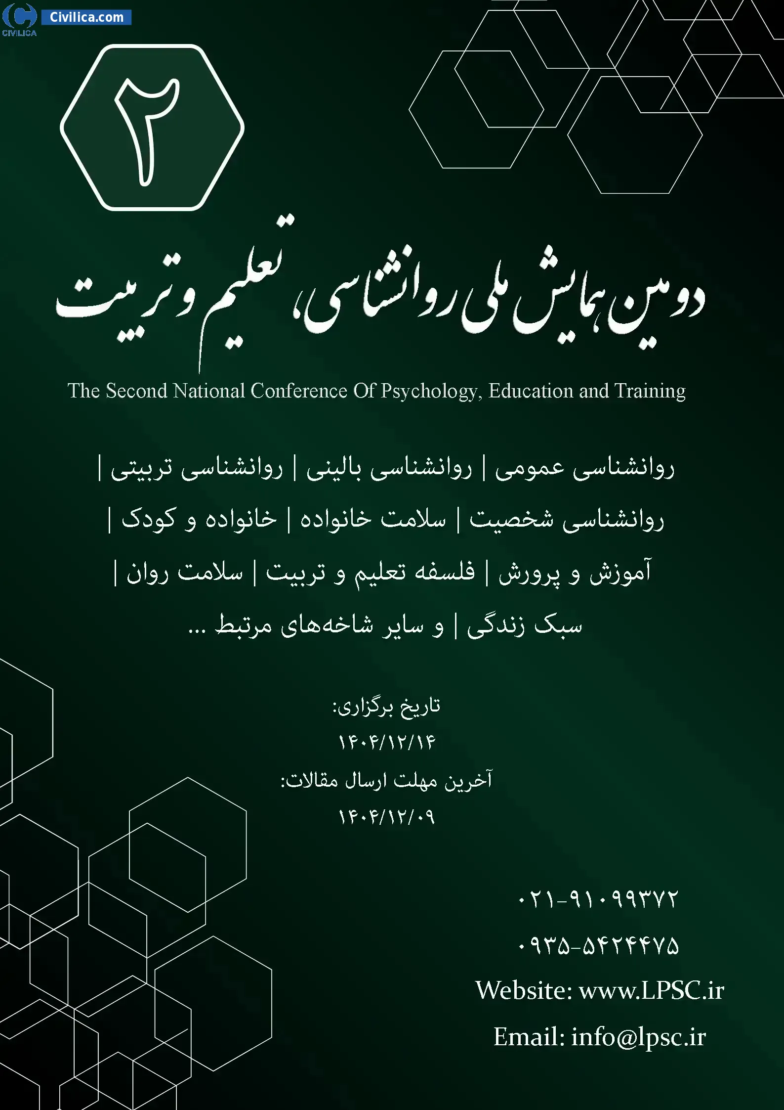 The Second National Conference Of Psychology, Education and Training In date 2026-03-05 by ,اندیشکده مطالعات علوم و فناوری اشراق in City Qom will be held.Since the conference held officially, all of this Conference paper and proceedings will be indexed in the Civilica database and Iranian Consortium of National Content (ICNC) and you can have full confidence.