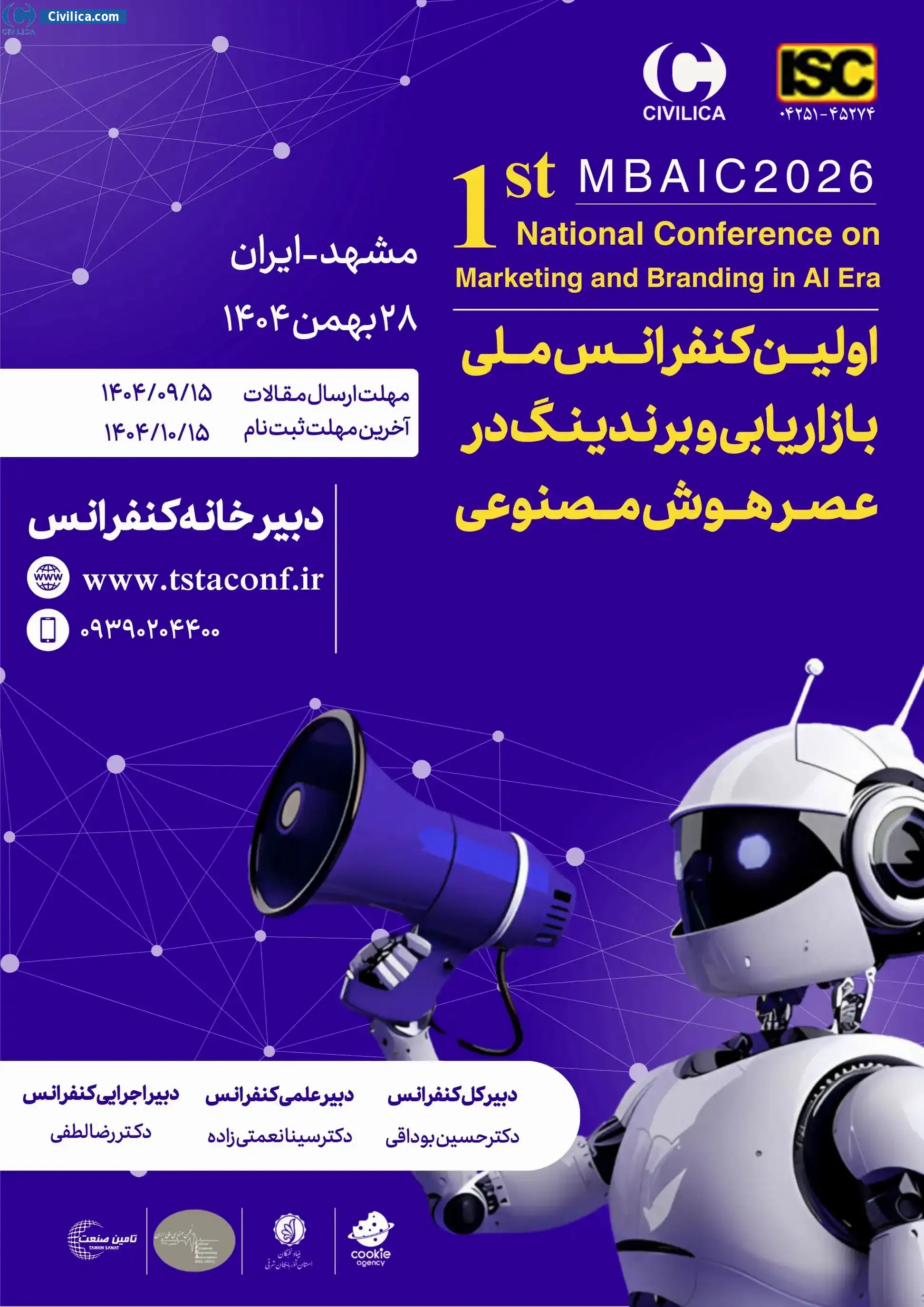 The First National Marketing and Branding Conference in the Age of Artificial Intelligence In date 2026-02-17 by ,Financial Engineering Association of Iranشرکت تامین صنعت تجارت آزاد بنیاد نخبگان استان آذربایجان شرقی in City Mashhad will be held.Since the conference held officially, all of this Conference paper and proceedings will be indexed in the Civilica database and Iranian Consortium of National Content (ICNC) and you can have full confidence.