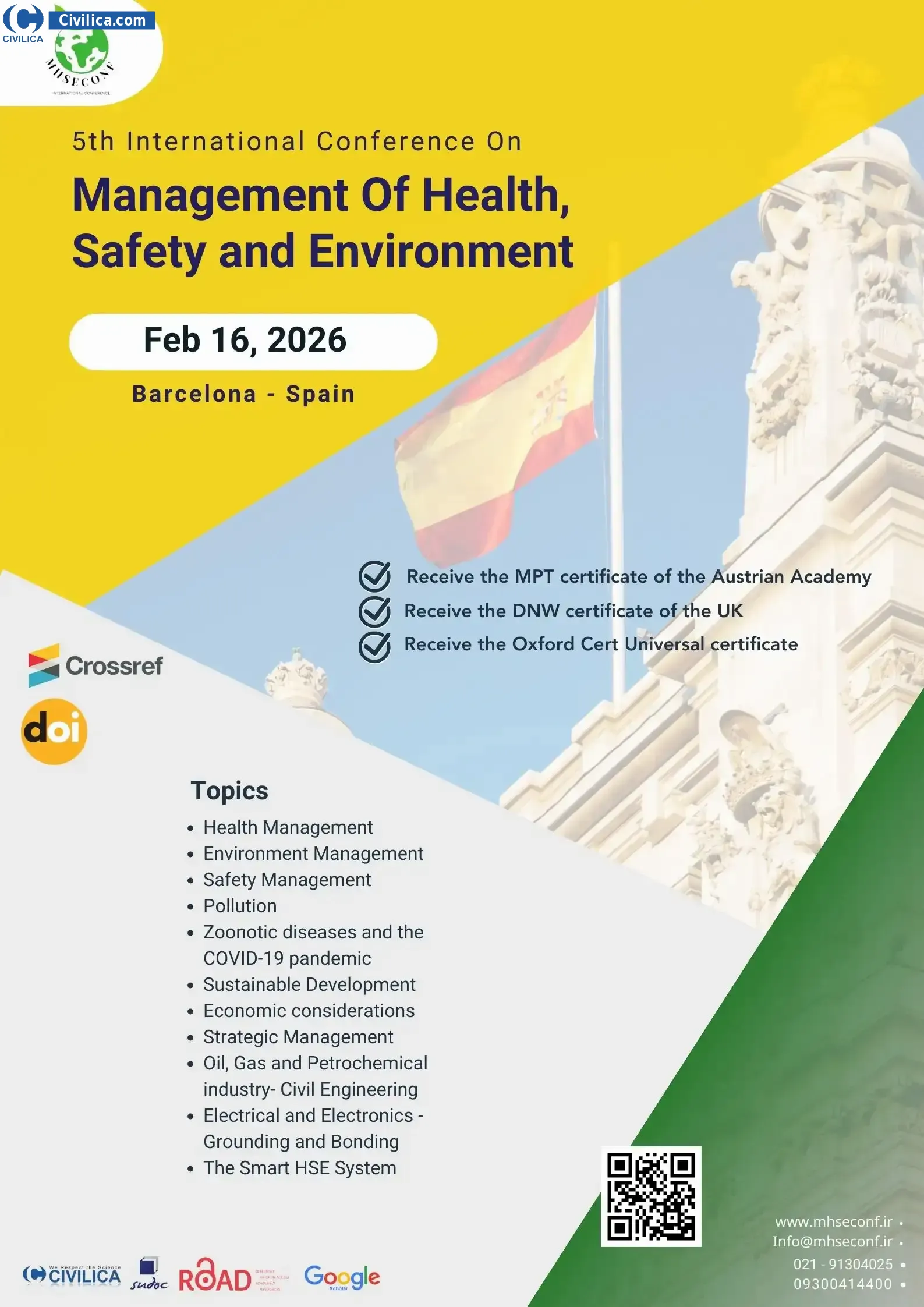 5th International Conference on Management of Health, Safety and Environment In date 2026-02-16 by ,همایش آروین البرز will be held.Since the conference held officially, all of this Conference paper and proceedings will be indexed in the Civilica database and Iranian Consortium of National Content (ICNC) and you can have full confidence.