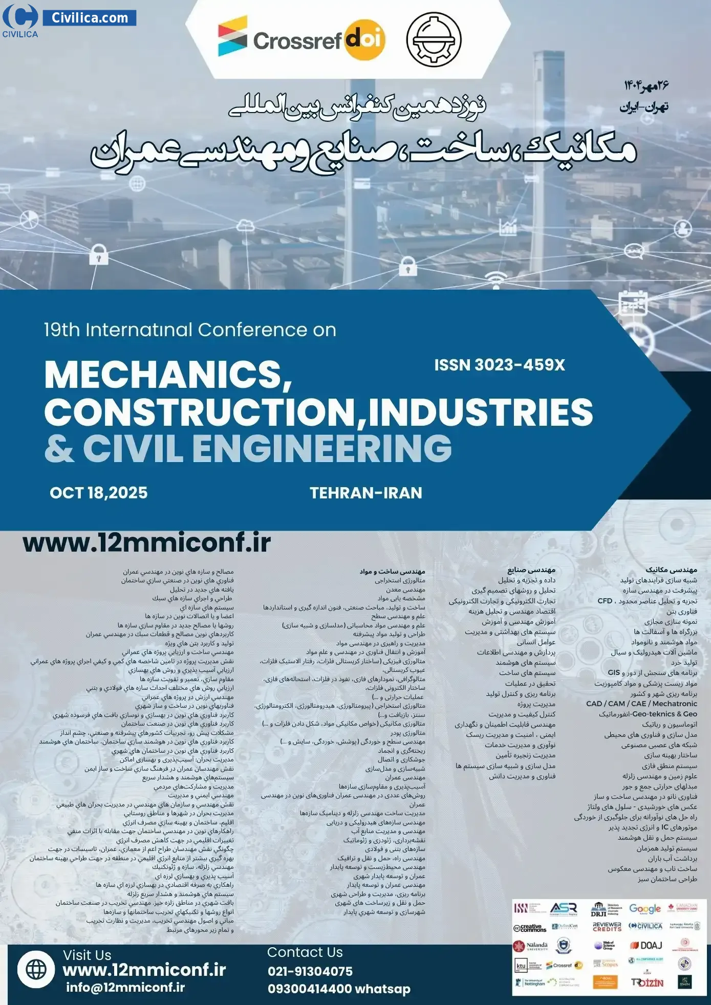 19th International Conference on Mechanical, Construction Industrial & Civil Engineering In date 2025-10-18 by ,همایش آروین البرز in City Tehran was held. please refer to the following link to download all the papers of conference proceedings: Proceedings 19th International Conference on Mechanical, Construction Industrial & Civil Engineering
