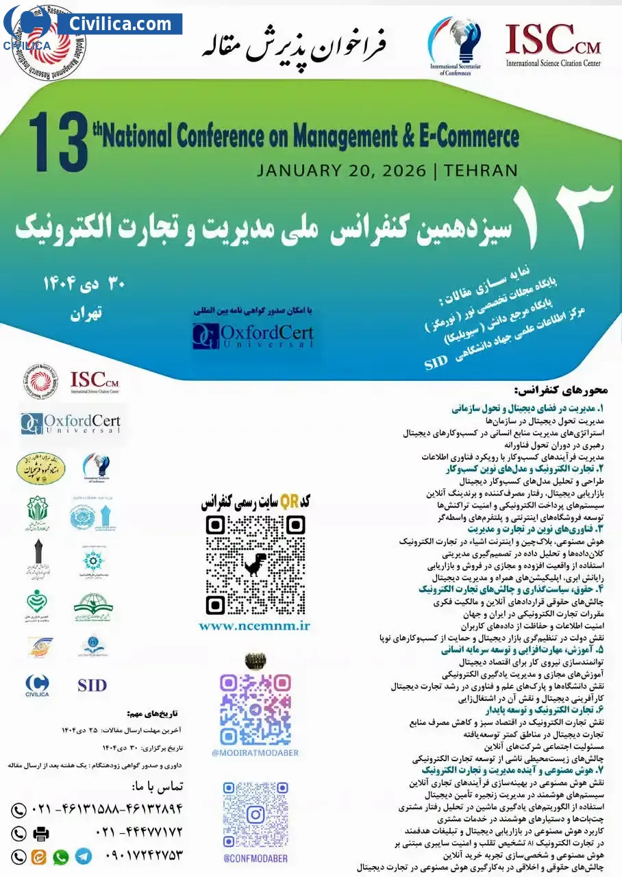 Postall Address: بلوار اشرفی اصفهانی، بالاتر از میدان پونک. خیابان سوم، پلاک ۳۰، واحد ۸. دبیرخانه بین المللی کنفرانس ها