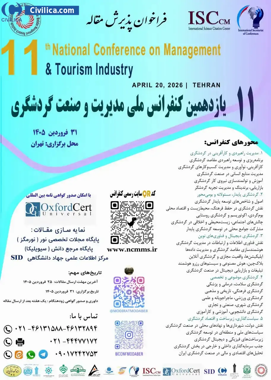 Postall Address: تهران، بزرگراه اشرفی اصفهانی، بالاتر از میدان پونک. بلوار کمالی، پلاک ۷، ساختمان گلها، واحد ۱۶. دبیرخانه بین المللی کنفرانس ها